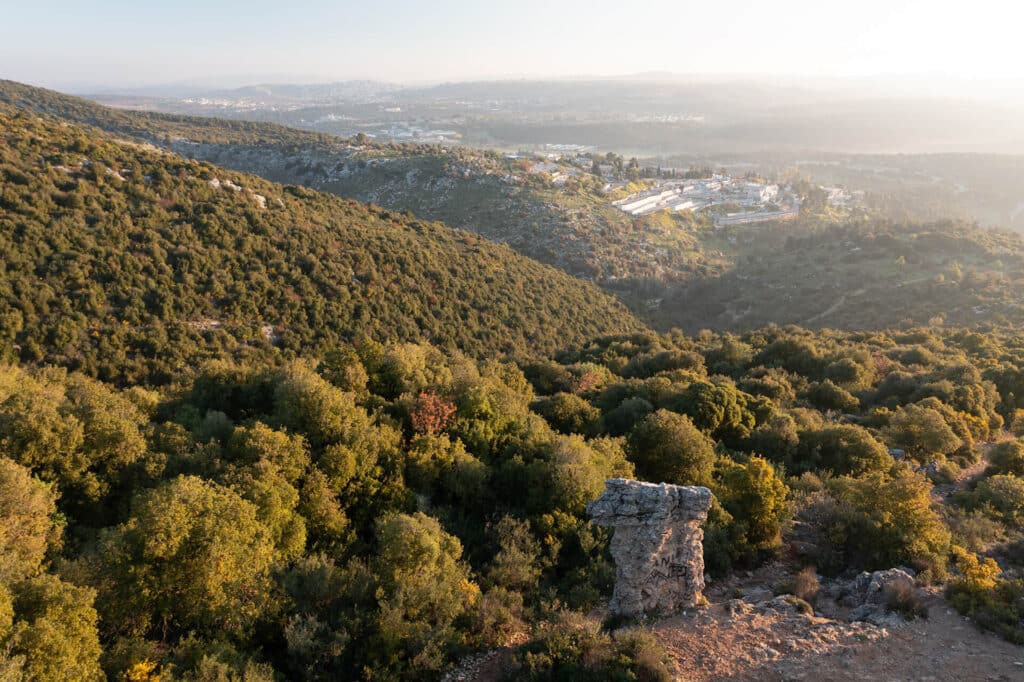בהר מירון, מול קבר הרשב"י, בולט עמוד סלע מוגבה, אשר לפי המסורת, עליו יישב אליהו הנביא לפני ביאת המשיח ויבשר על בואו.